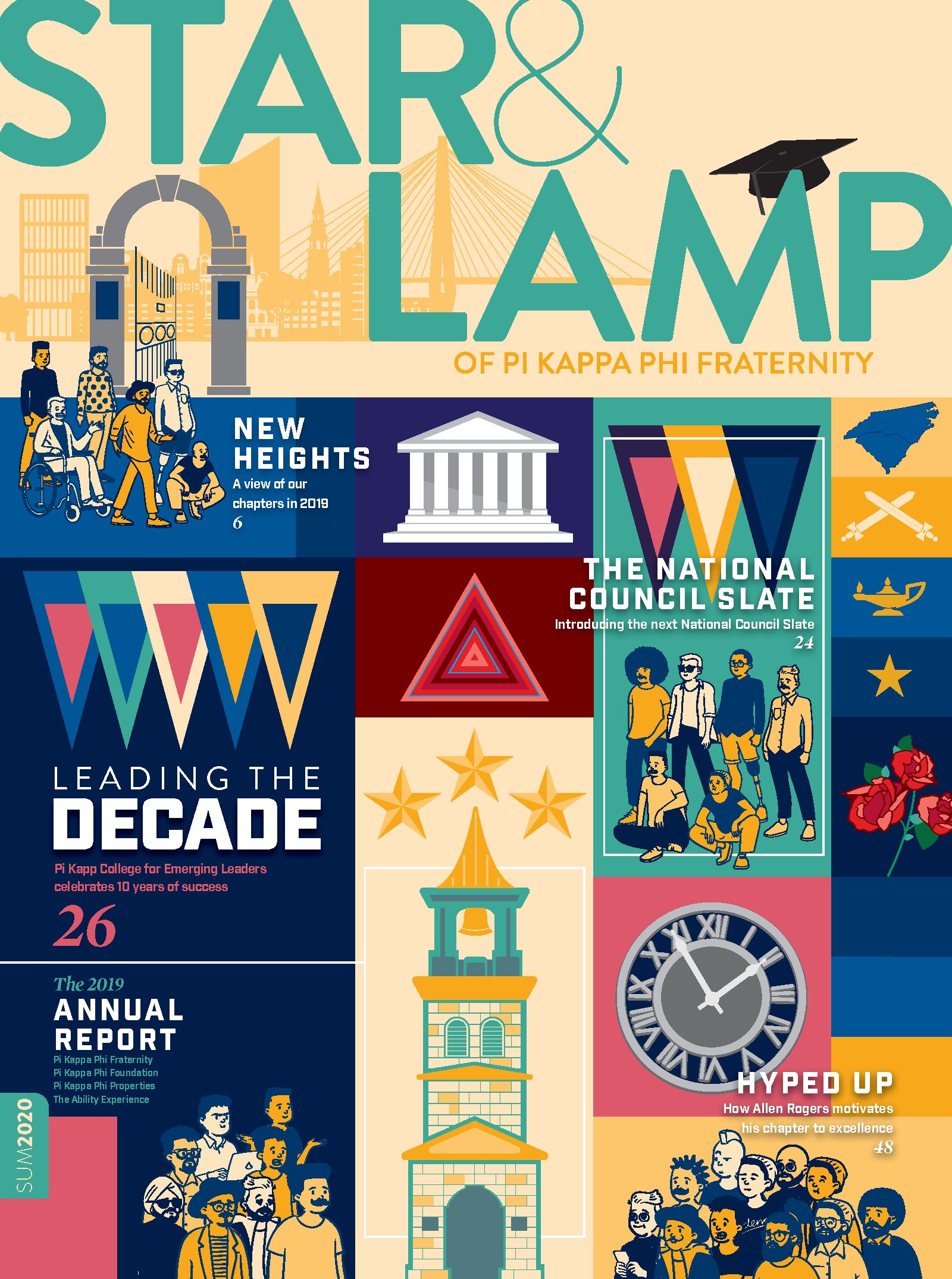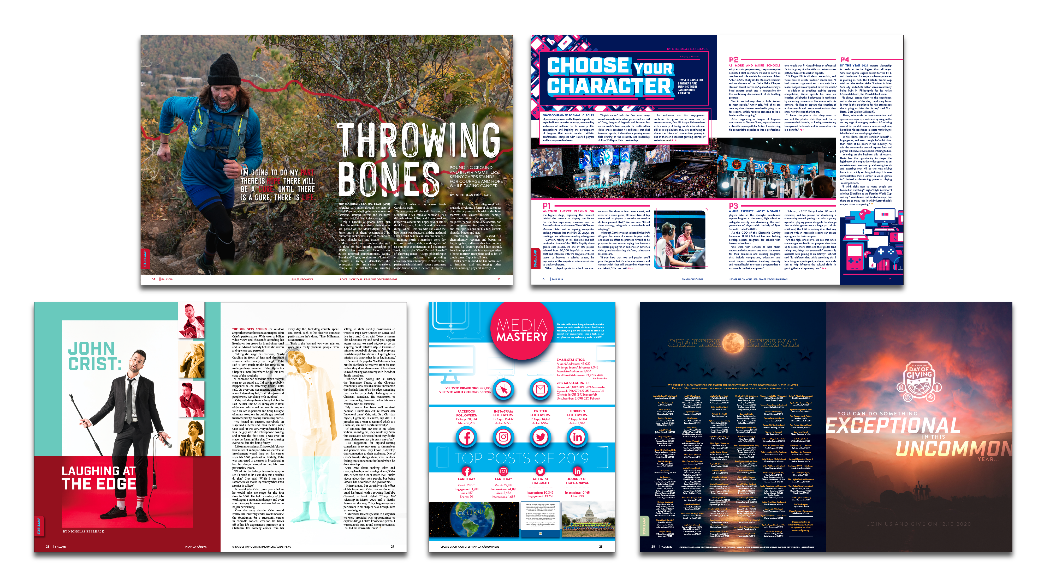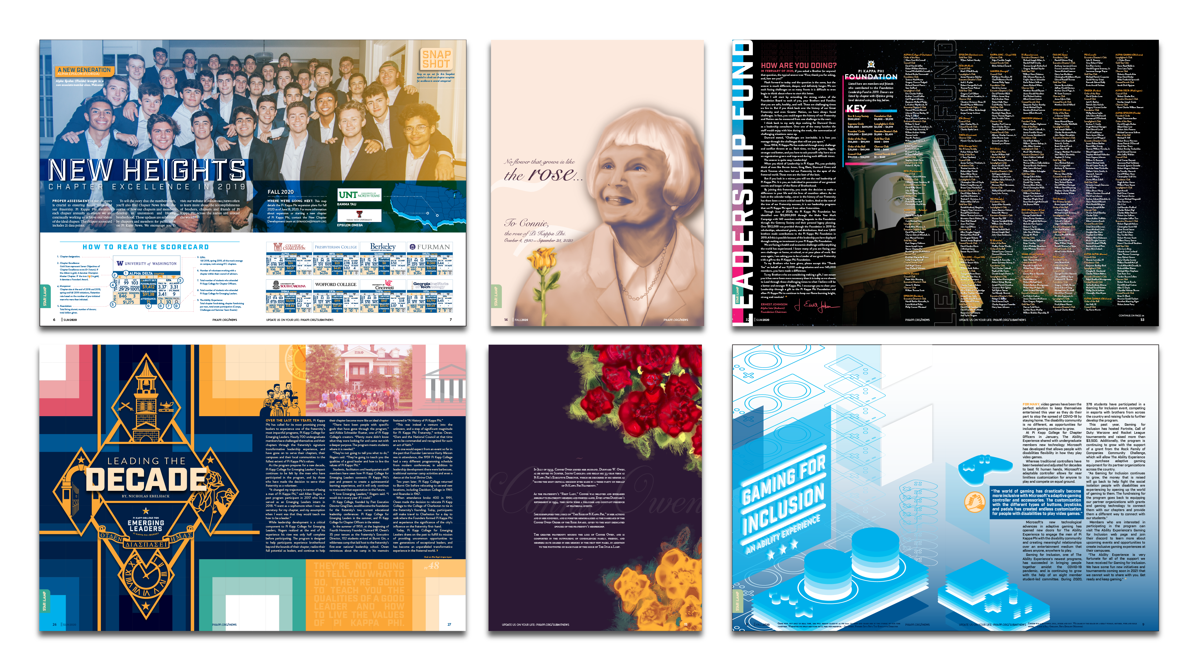 First published in the fall of 1909, the Star & Lamp is the magazine of Pi Kappa Phi Fraternity and is produced in-house. As the official publication of the organization, the Star & Lamp serves as a forum of communication to educate, inspire, and move to action members on fraternity, Greek, and men’s issues. From primary designer to the creative director (while still designing), this magazine evolved from a rinse-and-repeat brochure to an industry, award-winning publication.